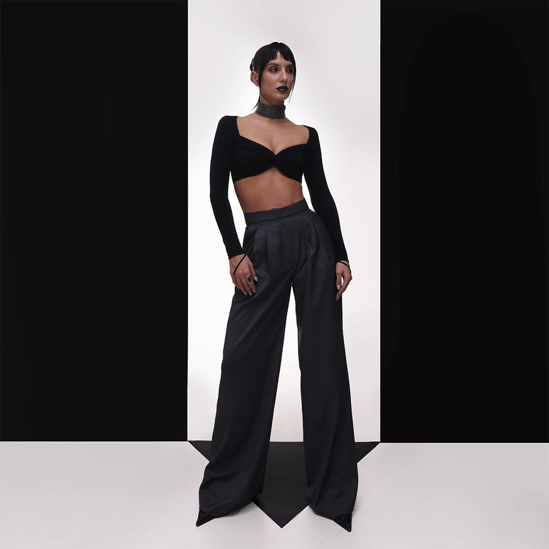 Classic straight-cut pants crafted from TR fabric, featuring sharp pleats for.a timeless and polished look!