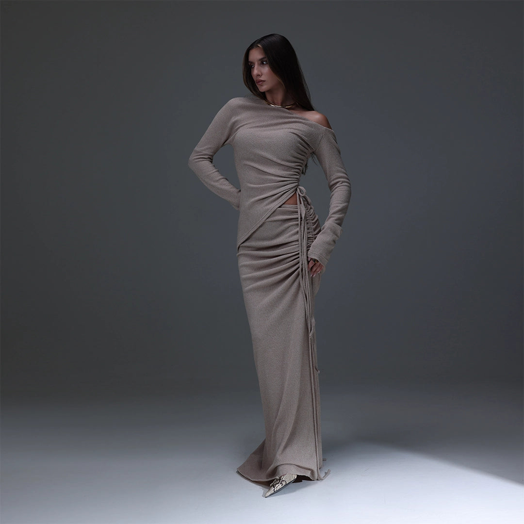 Comfortable skirt in ribbed tricot fabric, featuring a side pleated adjustable waistband for stylish fit!