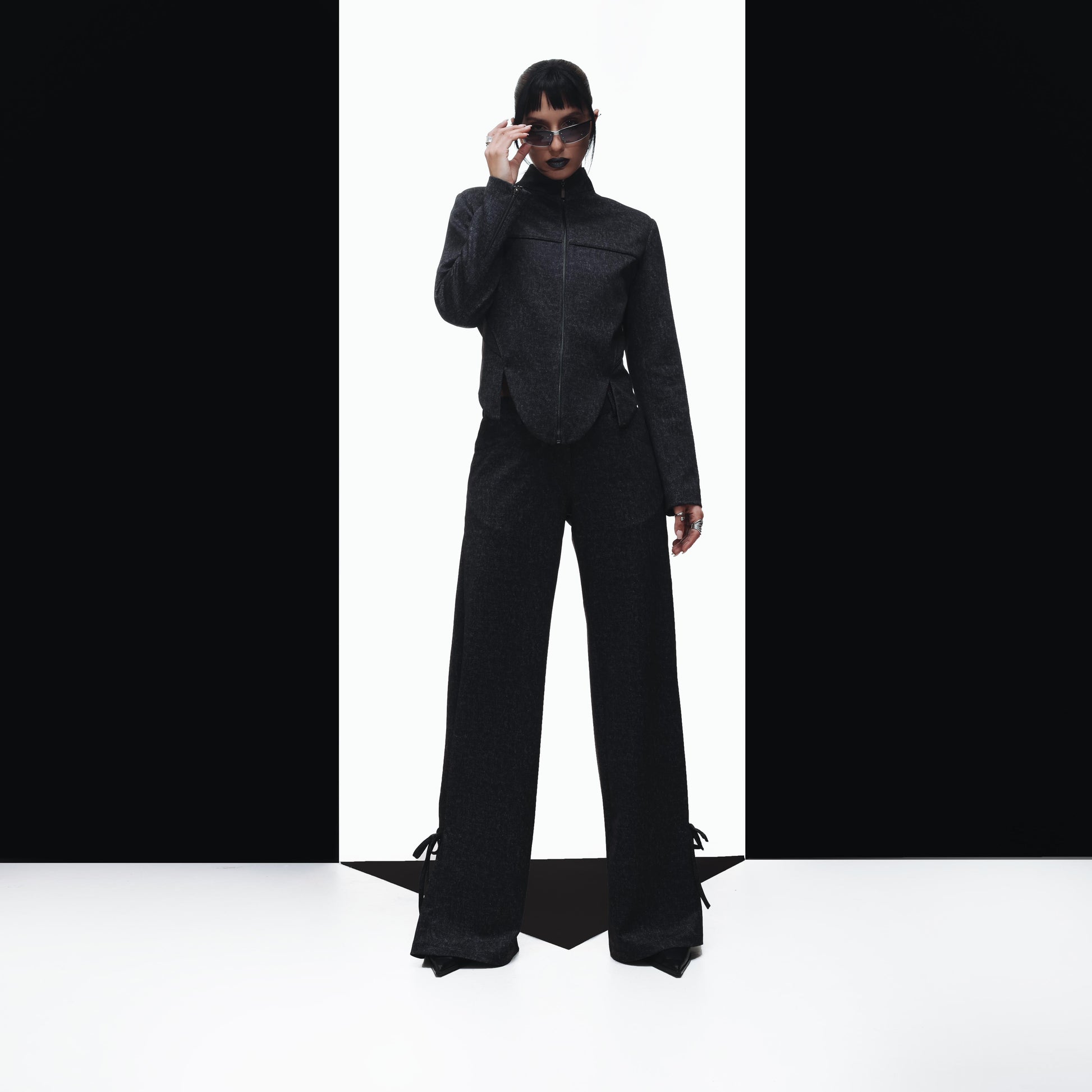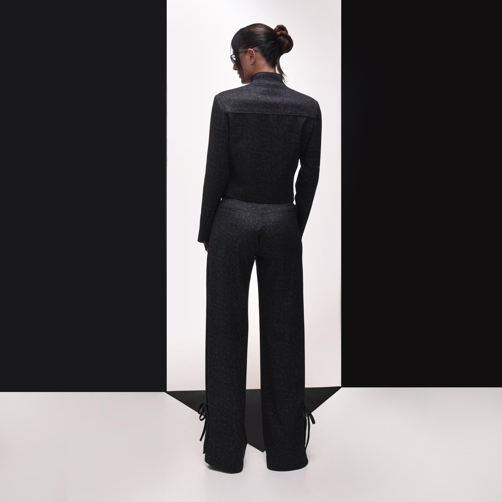 Low-waist pants in thick jersey with a denim look, featuring tied laces at the hem. Comfortable, bold and effortlessly stylish!
